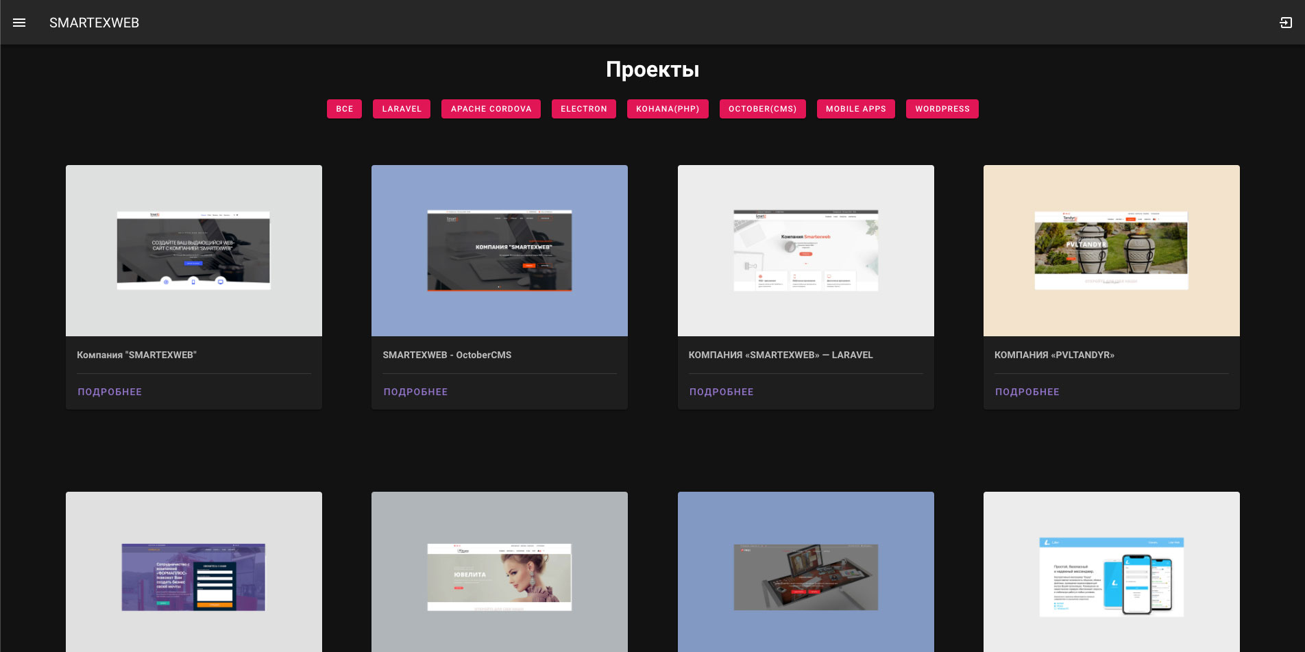 Этот проект создан с целью изучения фреймворка Vue.js, с целью изучения Vue Router, изучения стэйт менеджера Vuex, документации и прочего для фреймворка Vue.js. В проекте используется очень удобный CSS фреймворк Vuetify. Фильтрация списка проектов реализована при помощи стэйт менеджера Vuex. API реализован с использованием фреймворка Laravel — https://laravel.smartexweb.kz/
